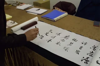 2樓展廰有水彩畫及照片展覽,而3樓則有書法家開了一個個人書法展。在接待處有簽名冊,歡迎進場參觀人士留下芳名。我和陳生分別簽署,希望可以名留清史。